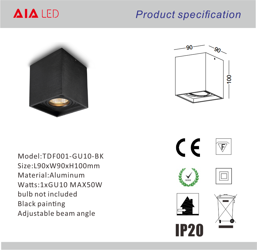 Model Number : TDF001-GU10-BK